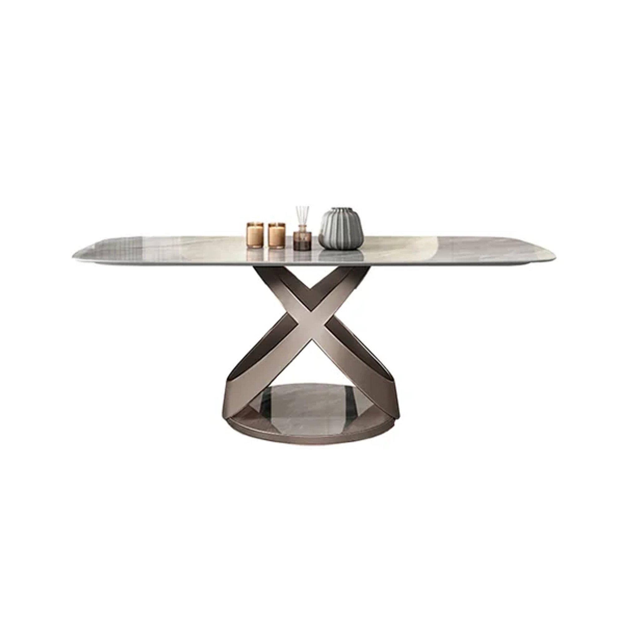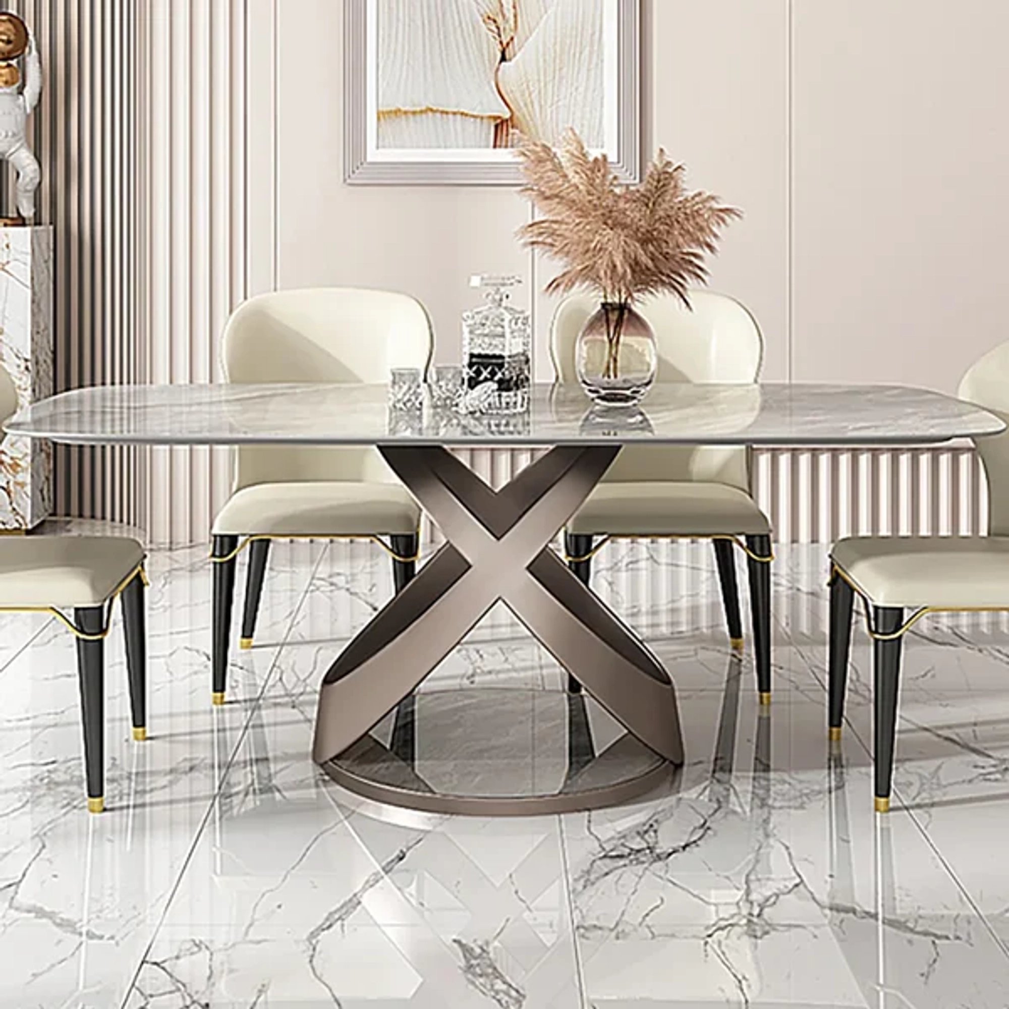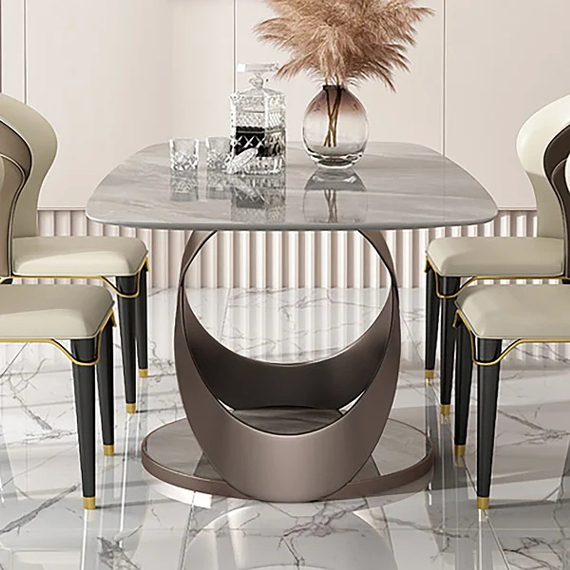 ✅ Premium Tabletop: Features a round-cornered sintered stone top with delicate grain patterns, adding sophistication and safety to your dining experience.